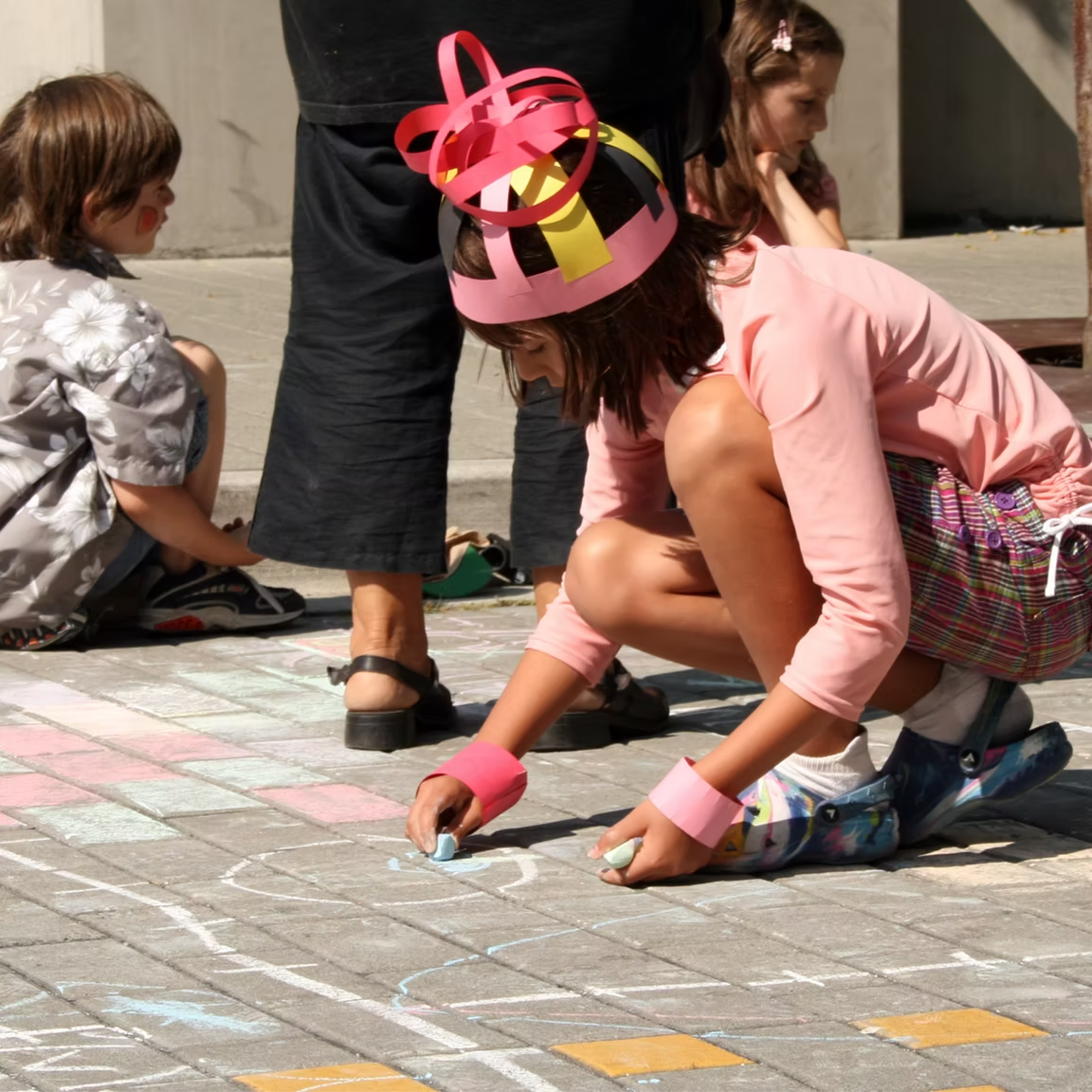 Join a lively community art activity where everyone can participate! A dynamic mural outline by artist, Bethany Fackrell comes to life as visitors Chalk-It-Up with bold colors and designs.